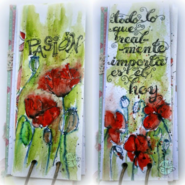 Sigo mostrándoles las flores que ahora estan dentro de mi libretica romántica. Practicamente no me habia dado cuenta de todas las amapolas que habia hecho hasta que comencé a poner las fotos en el grupo (mixed media y cia.). (Las primeras flores estan aqui.)