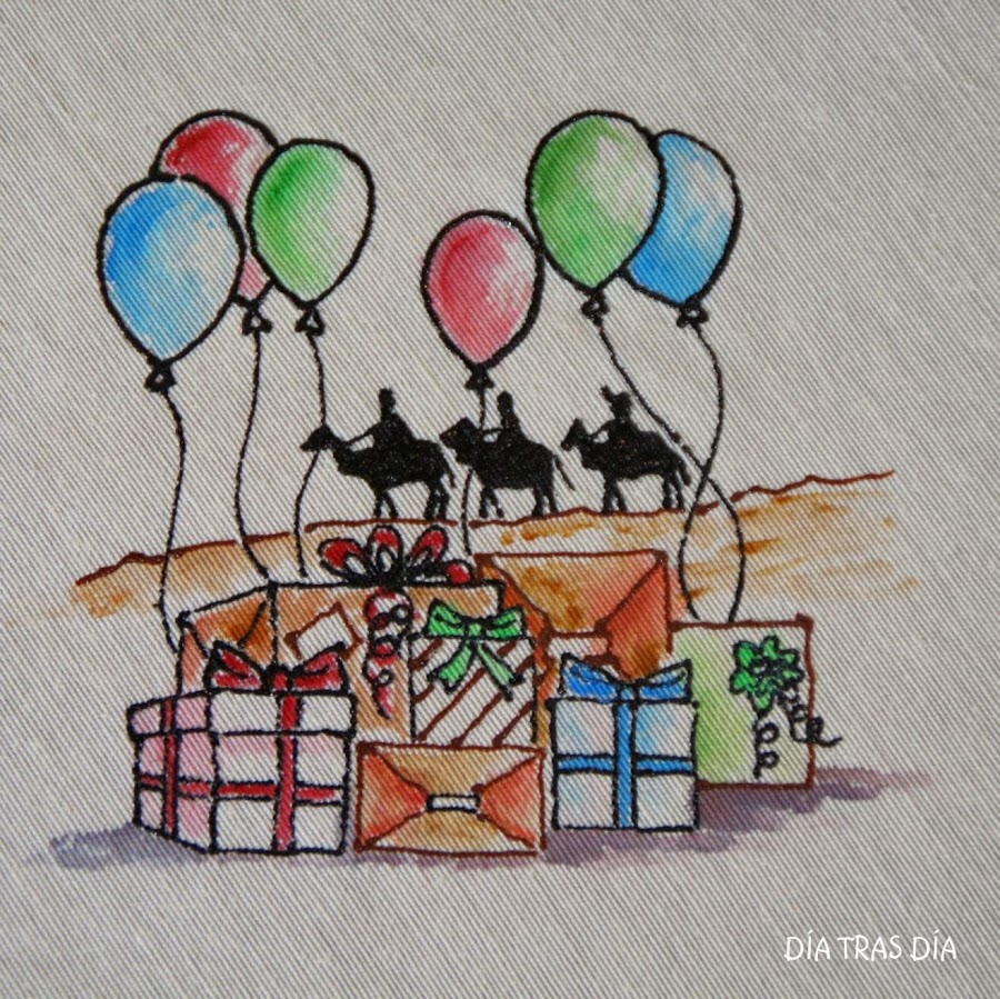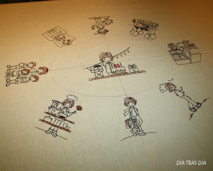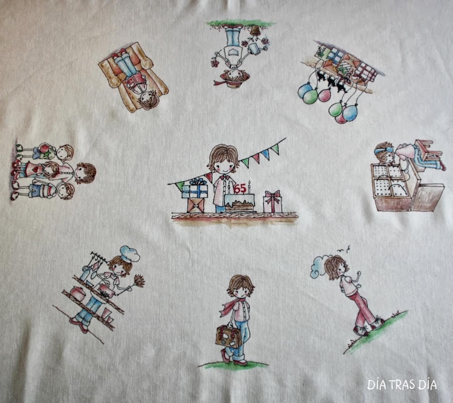 Ahora llegó el turno de calcar en el mantel todas y cada una de las escenas en su sitio: