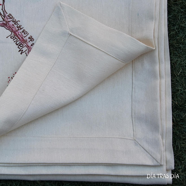 Para esto debo agradecer las enseñanzas que recibí de las monjitas del colegio cuando era pequeña, que me enseñaron cómo hacer de forma curiosa las esquinas de un mantel. Y también a mi memoria, que aún conserva el recuerdo ;-)