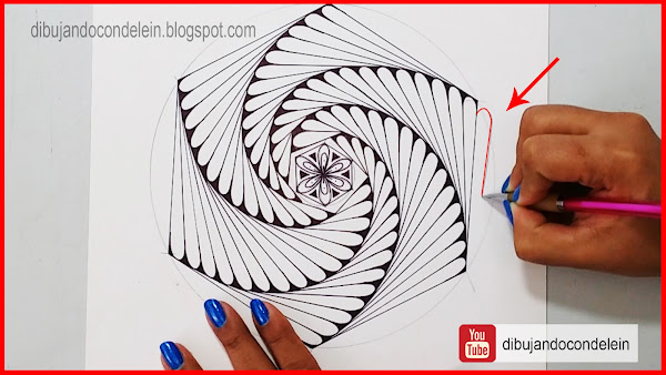 Este mandala, como les comentaba, se hace sobre la base de un hexágono y se decora con lineas, usando el diseño Zentangle que se llama Paradox, ese diseño o estampado zentangle ya lo compartí en un video anterior y lo pueden ver aquí https://youtu.be/XzvZ3BmyywM