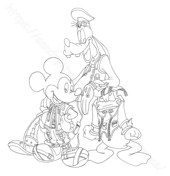 Pero la idea de solamente tomar de referencia esa imagen y hacer mi versión no me dejaba satisfecho, así que se me ocurrió tomar esa imagen de referencia y luego "vestirlos" con la ropa que llevan en Kingdom Hearts, me gustó la idea y me metí de lleno con ella.