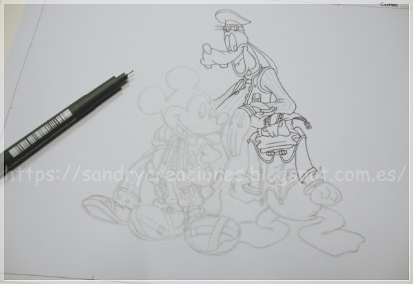 Para empezar a pintar lo mejor es pasar el dibujo a otra lámina, así evitamos las marcas que hayan podido quedar al dibujar a lápiz, podemos hacerlo o bien calcando el dibujo en otra lámina o como en mi caso escanear el dibujo e imprimirlo en otra lámina.