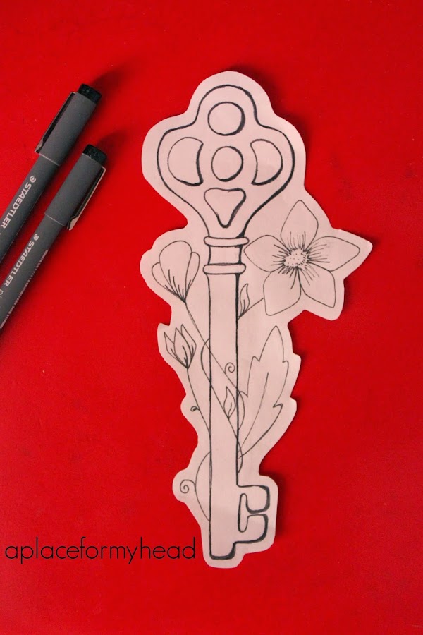 Entre clase y clase y en los momentos de mente en blanco saco hojas y me pongo a rallar a ver qué sale, cogí un papel donde tenía algunos apuntes y un boceto de la llave y empecé a dibujarle al rededor algunas flores.