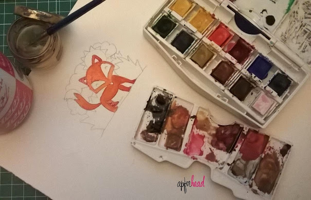 Al llegar a casa pasé el dibujo a papel de acuarela y me puse a pintar.