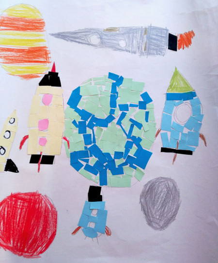Se trata de hacer dibujos, o imprimirlos desde internet, y decorarlos con mosaico de papel. Sencillo, ¿verdad? Y además, ¡económico!
