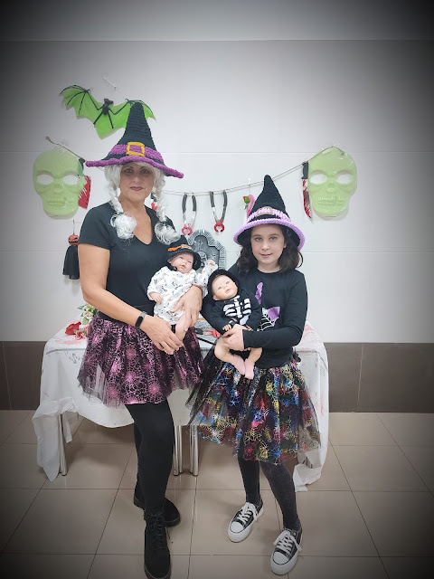 Este año sí que nos disfrazamos, y he tejido varios gorros
