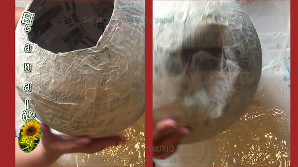 Le dí 3 capas de cartapesta a cada globo, en este caso no esperé a que secara cada capa, le di las 3 capas juntas y dejé secar los globos colgados toda la noche.