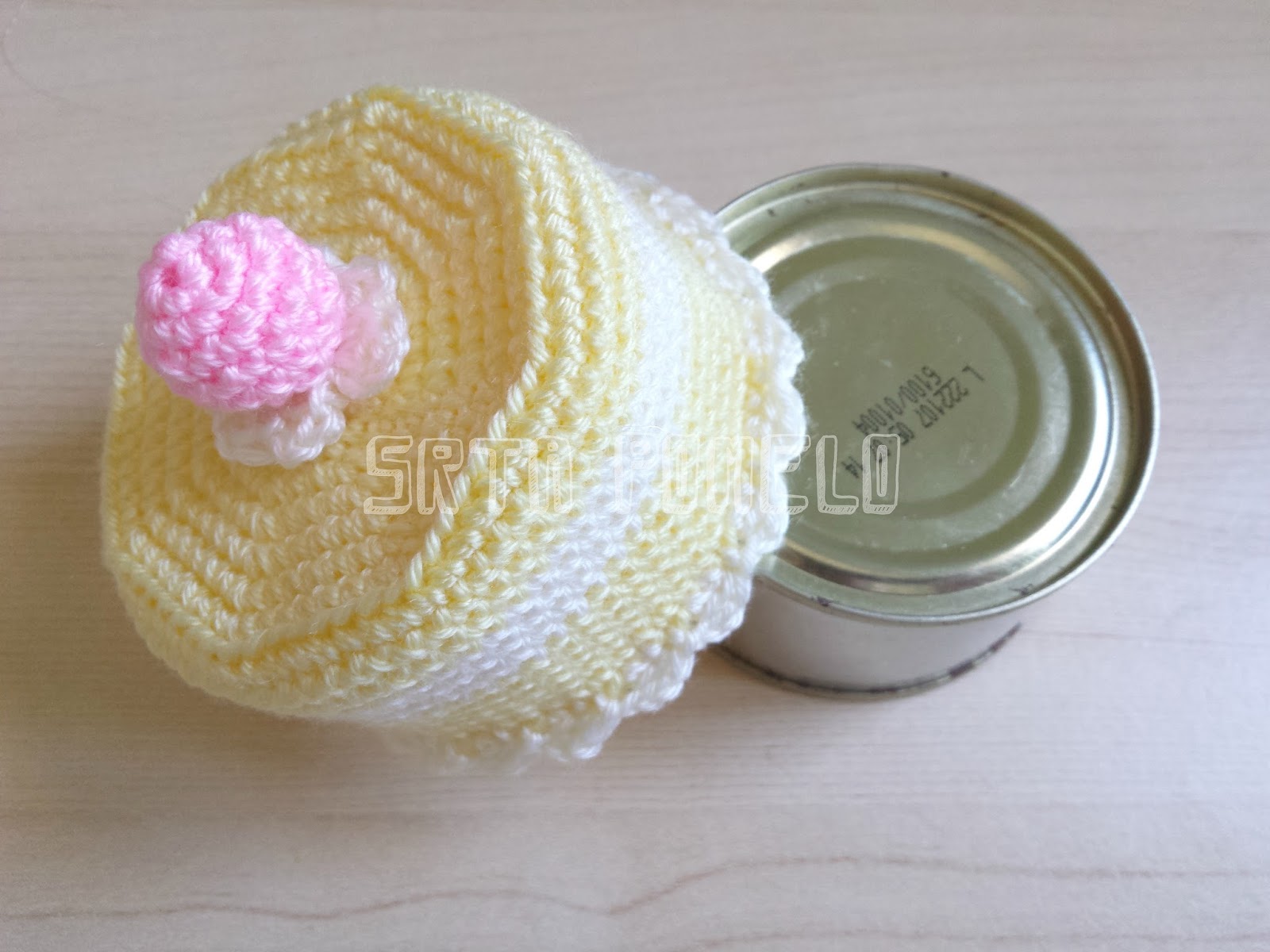 Ya tenemos nuestra TARTA DE AMIGURUMI para cubrir una lata de atún, que podemos usar de joyero, alfiletero, bombonera...lo que queráis.