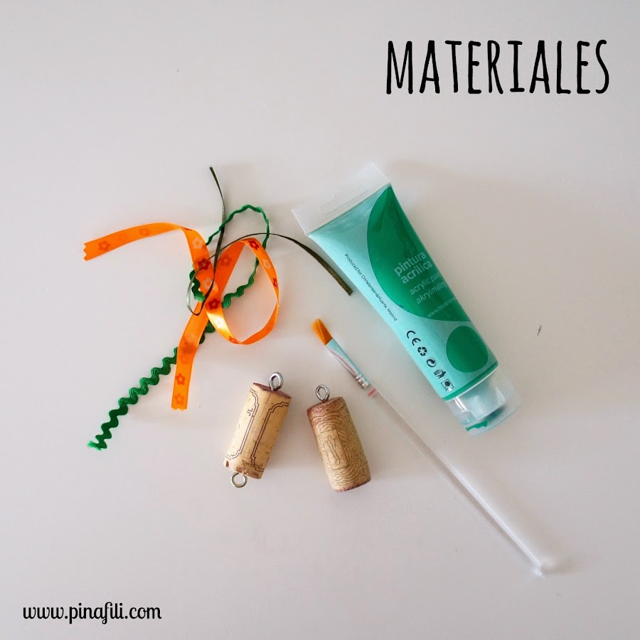Necesitaremos tapones de corcho, estos concretamente son de vino, anillas para colgar las llaves y tornillos redondos para clavarlos en el corcho y que nos sirvan de unión.