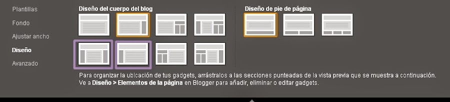 Una vez elegida cuidadosamente la plantilla que queremos para nuestro blog, ahora podemos cambiar su disposición con la pestaña Diseño: