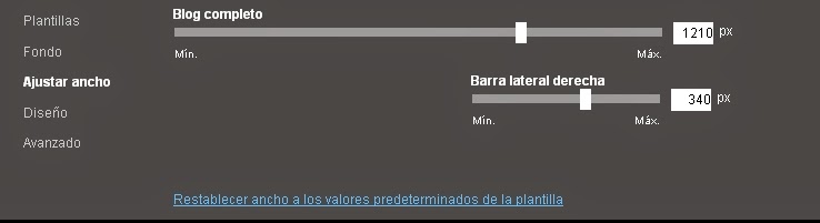 Para ultimar la cimentación del edificio que es nuestro blog, tenemos que delimitar muy bien la medida que queremos que tenga. Para eso vamos a la pestaña Ajustar ancho y elegimos el tamaño que queramos que tenga nuestro blog.