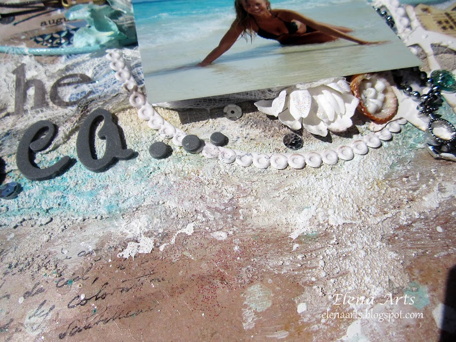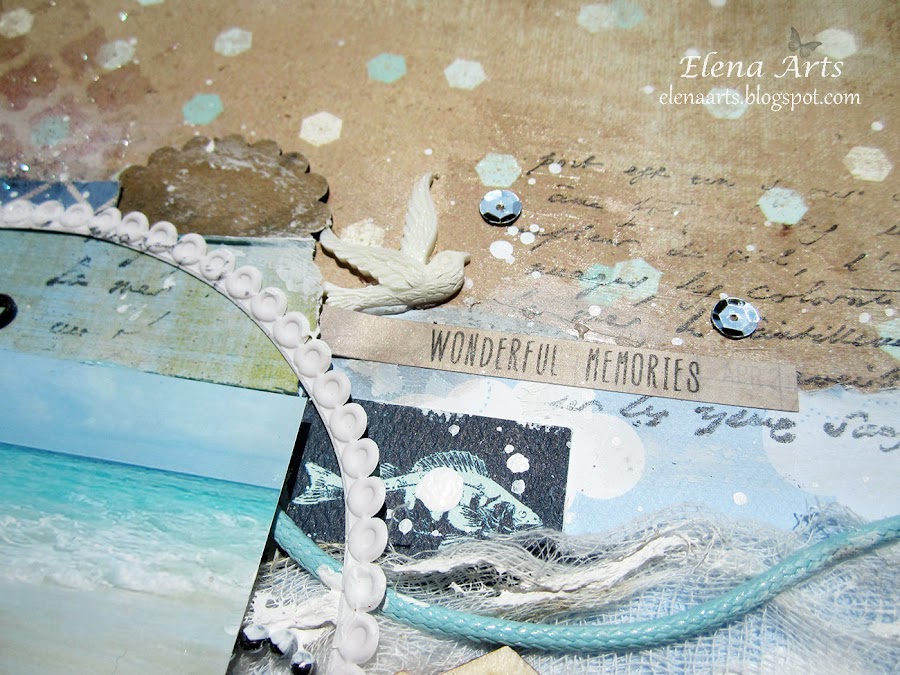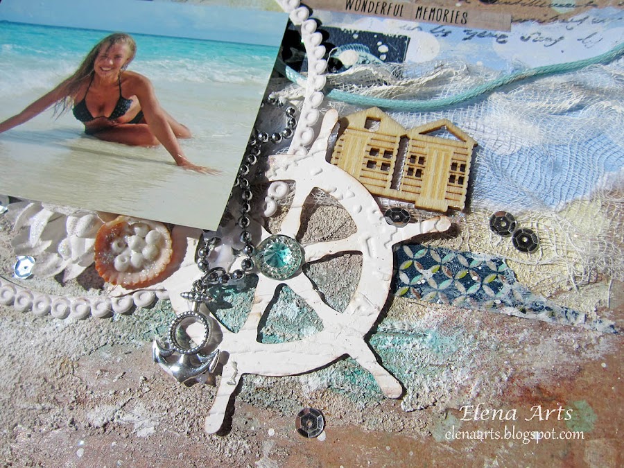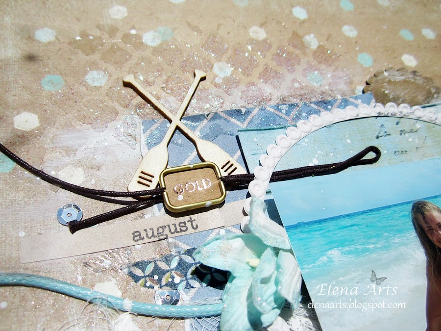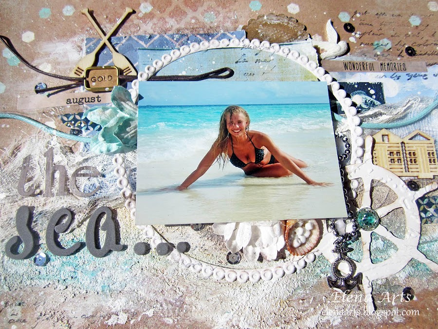 Hi everybody! How is the summer going? Here in Spain is very hot and we have our forest burning. SOS!!! Do you want to refresh, I do? As guest designer in the blog Divnye Shtuchki I have prepared this layout very sailor:) In the photo is my cousin Gala posing in the sea, that beauty of woman lol! The background paper, is from Heidi Swapp collection. Normally her designs are from very defined drawings, better for CAS, but this collection is very summery, with bright colors and some warn effects.