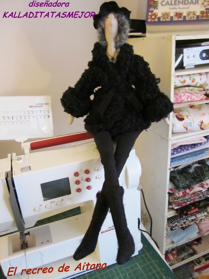 Lleva un abrigo de astracan (sintetico of curse) con pamela de dia en fieltro. Las botas son de piel de vaca que crian en el "putaetxe" para estos menesteres (botas, zapatos y bolsos)