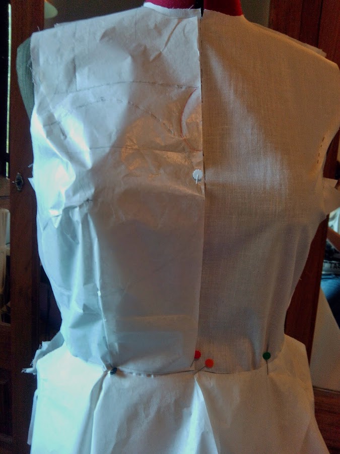 Ahora "solo" queda hacer el patrón base y modificarlo para adaptarlo a nuestro diseño. Que a no ser que tenga muchos volúmenes, estas modificaiones las hago directamente sobre mi inestimable ayudante Úrsula (bautizada así por mi marido, por lo del cuerpo de Úrsula Andress). Bendito sea el día en que me la autoregalé.