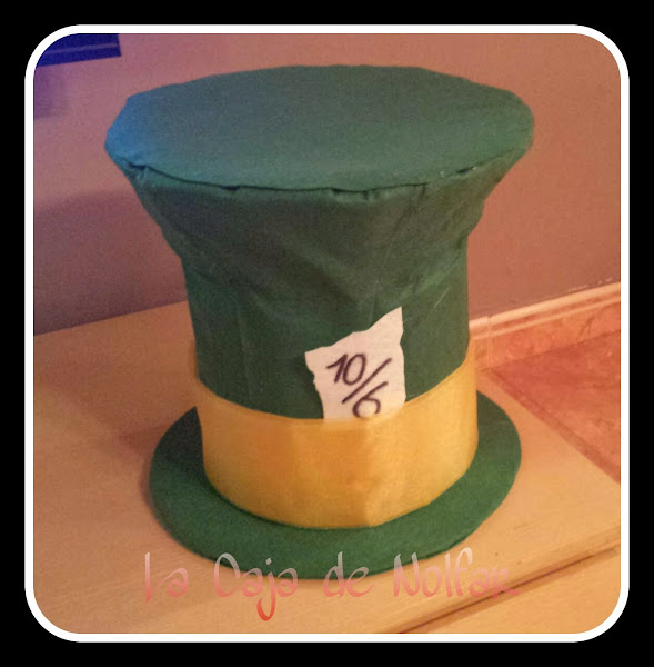 Y por último el disfraz del Sombrerero Loco. La ropa, la que teníamos por casa: camisa, pantalón y americana. De complementos un gran lazo, un colgante hecho con hilos y como no, el gran sombrero de copa: