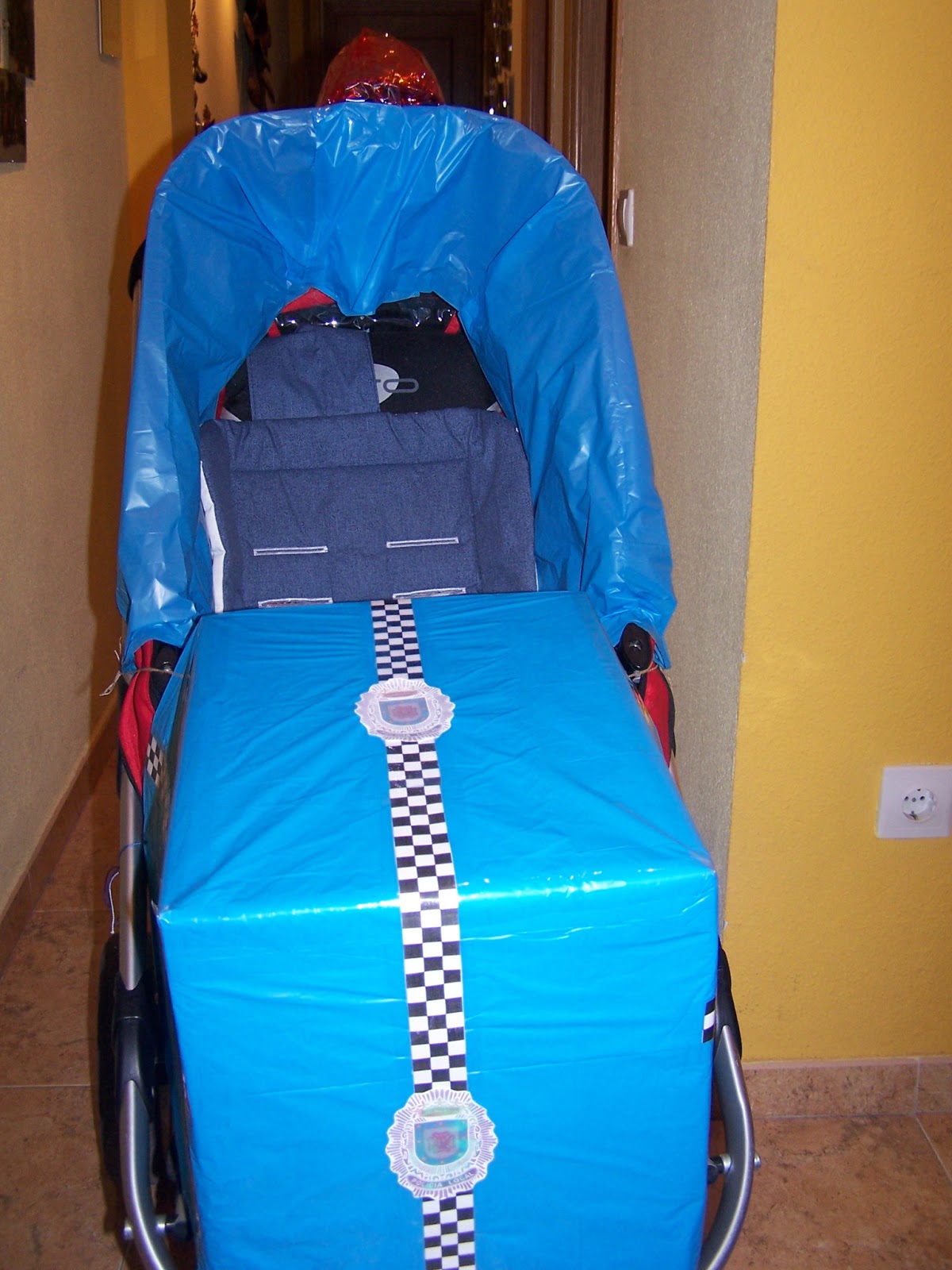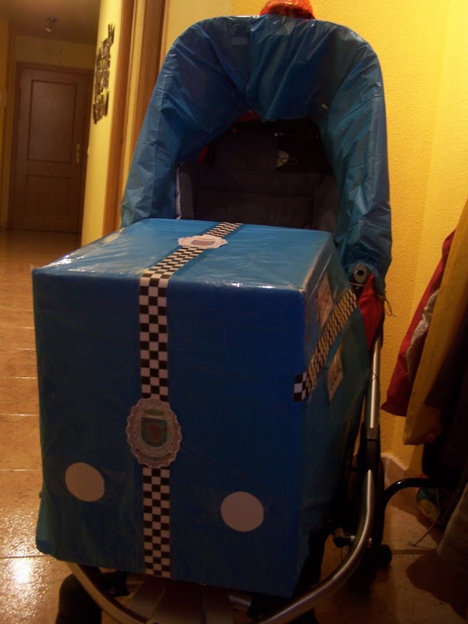 Pero claro, también me llevaba al pequeño, por lo que también le hice el disfraz, y como no, que una se mete en muchos follones, pues me puse a "disfrazar" el carro, jajajajajjaja.