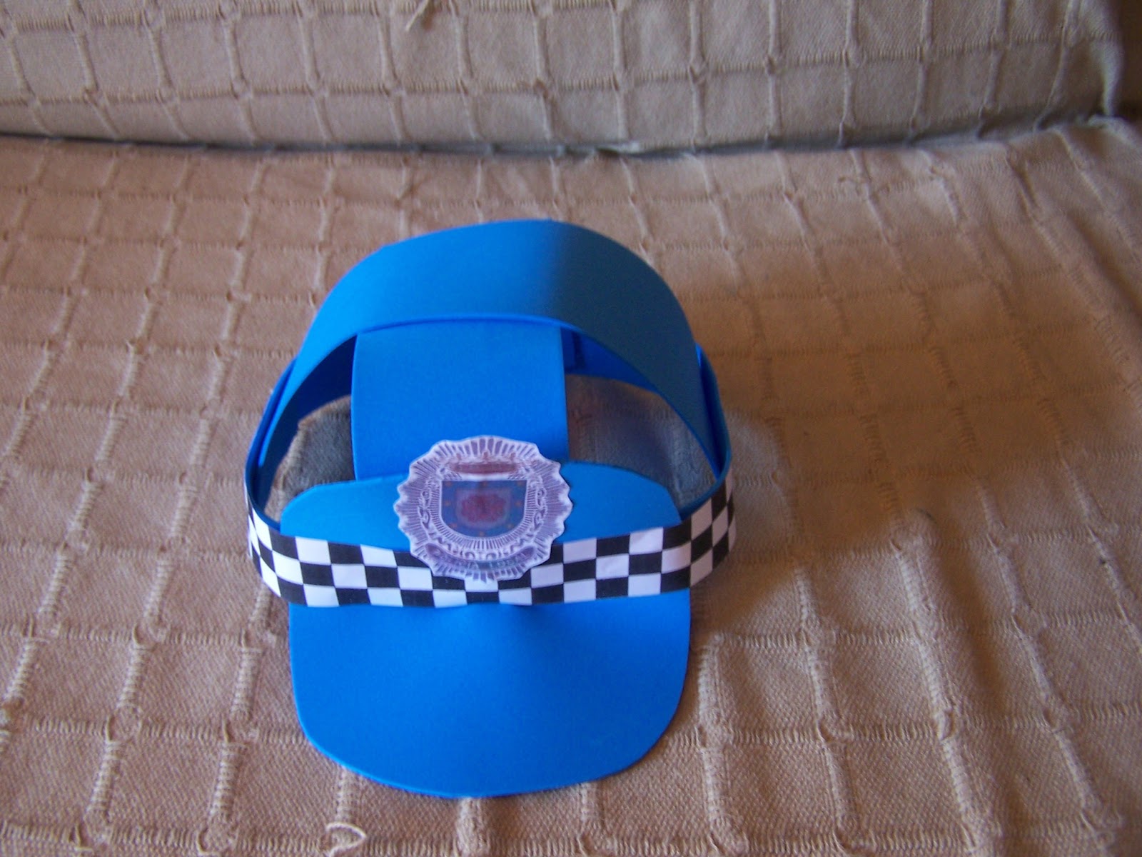 Por falta de tiempo no pude hacerlo mejor, pero vamos, que era un coche de policia con su sirena y todo (el tiesto de una maceta de plástico que tenía en casa forrado con papel celofán de color rojo) , con sus faros y sus escudos y sus letreros en el lateral de Policía Local