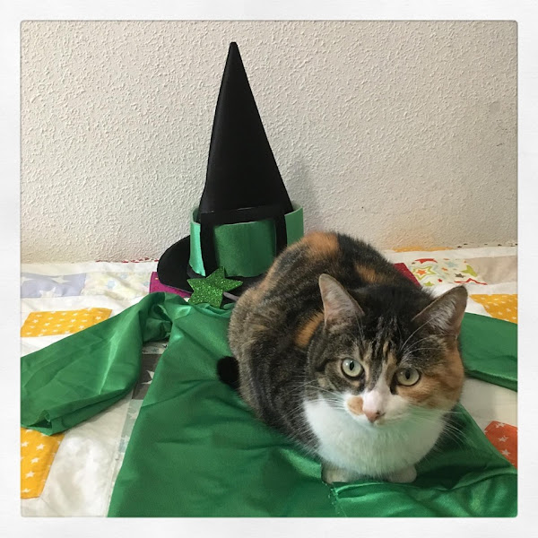 No es obligatorio que un gato de brujo sea negro. El gato de Hermione es color canela. Además, nuestra gatita de tres colores combina con todo.