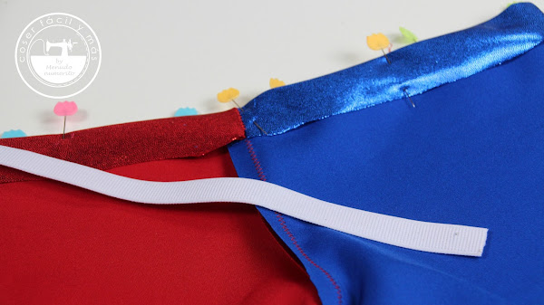 Para completar el disfraz con los pantaloncitos bicolor que lleva la chica de la peli he usado un patrón de Anna Evers aunque un poco modificado, puedes descargarlo aquí. Yo no he cortado la cinturilla y, como te digo, he rebajado la altura del pantalón y el largo de pierna para adaptarlo al disfraz, lo vas a ver en el vídeo.