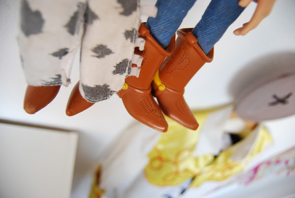 Jessie y Woody son casi parte de la familia, Aida tiene sus muñecos desde pequeña y aquí siguen, y me temo que como a Andy, le va a costar mucho separarse de ellos :-). Recuerdo un día que llevó a Jessie al cole y se perdió durante dos días, fue todo un drama, hasta pusimos carteles en la puerta del colegio como si se nos hubiese perdido una mascota (sí, soy la madre loca que colocó carteles en búsqueda de un muñeco...,) pero funcionó!! y Jessie volvió con nosotros sana y salva :-).
