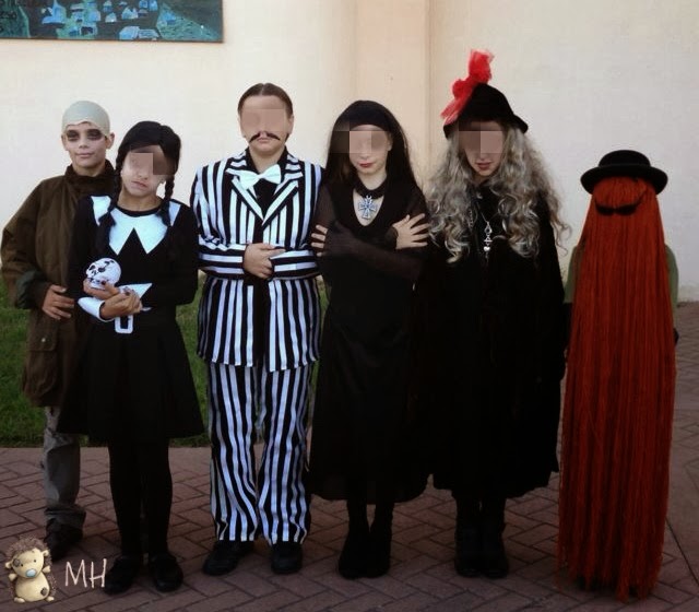 El resto de los disfraces también impresionantes (no se ve en las fotos, pero Gómez lleva un traje negro convertido en Milrayas gracias a cinta aislante blanca, el hijo de la Familia Addams realmente es una niña muy delgada, el maquillaje de Fétido, Mordizia y la tía abuela es espectacular, etc). Pero lo más importante es que es un disfraz muy divertido (para los niños y sus padres, y prueba de ello es la cantidad de tiempo que han estado posando).