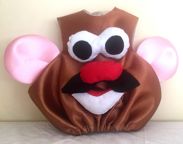 El disfraz que os propongo es el mítico Mr Potato, ( quien no ha jugado alguna vez con el? ) al que podréis versionar de la forma que más os guste. En mi caso he sacado el patrón usando un body de bebe de guía, si os animáis a hacerlo para adulto, deberéis seguir los mismos pasos usando una camiseta o un jersey.