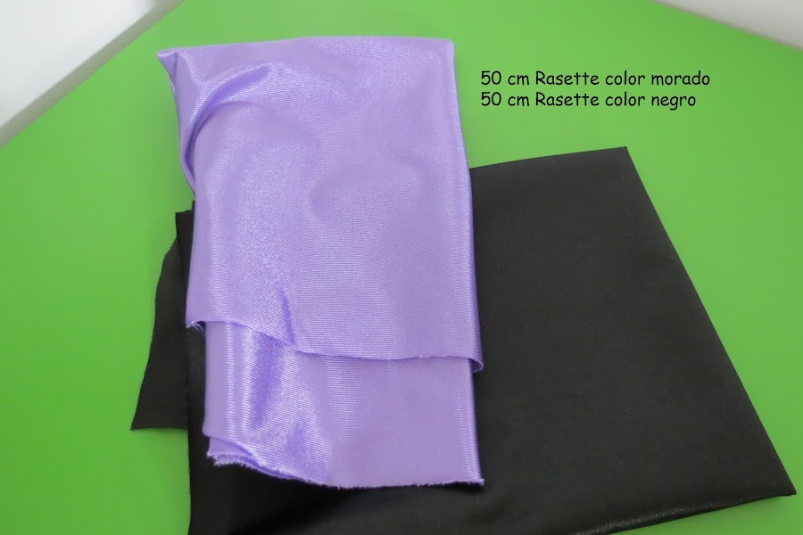 *50 cm de rasette de color morado y 50 cm de rasette de color negro (ambos trozos 2,50€)