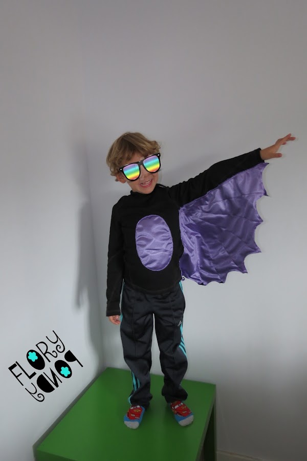 ¿Os gusta? Pues venga vamos a apuntar la lista de materiales que son pocos y baratitos ya veréis.Por cierto os voy a dejar el patrón tanto de las alas del murciélago como del antifaz.De todos modos os voy a explicar como hice el patrón por si vuestro niño es mayor o menor. Casi que si es menor podéis imprimiros el patrón que os dejo y solo tenéis que recortarlo acorde a su camiseta, pero seguid leyendo y os lo cuento todo.