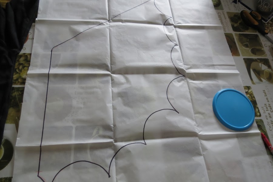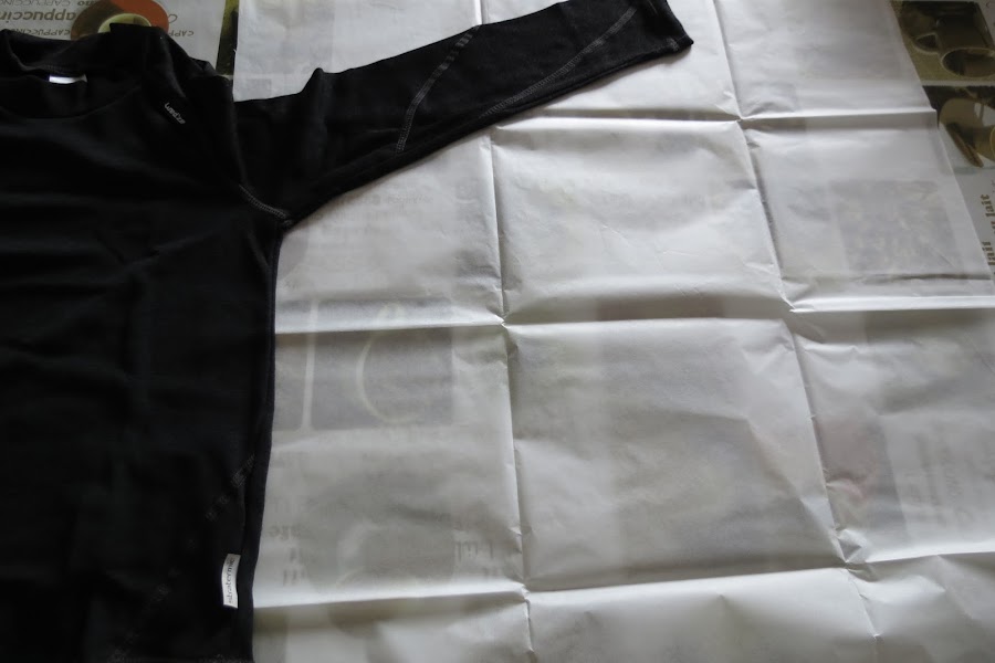 Bien tomamos la camiseta y la ponemos sobre una mesa grande y por debajo colocamos un papel para realizar el patrón en caso de que no os valga el que yo os dejo para descargar.Yo usé papel de patrón,pero podéis usar papel de regalo, de periódico etc...
