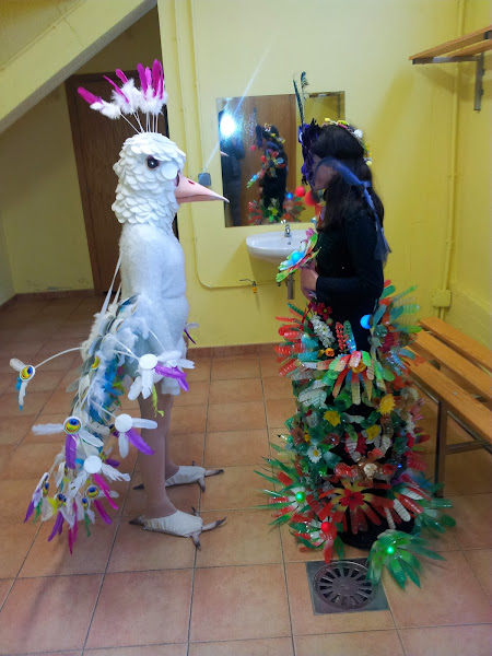 DISFRAZ DE PAVO REAL RECICLADO y LUCIERNAGA DE LAS FLORES