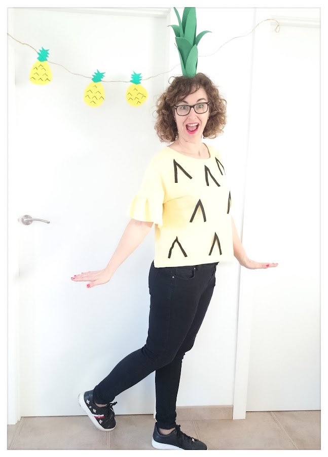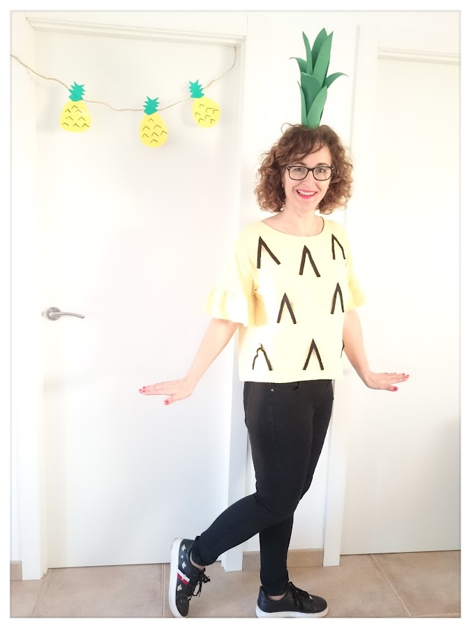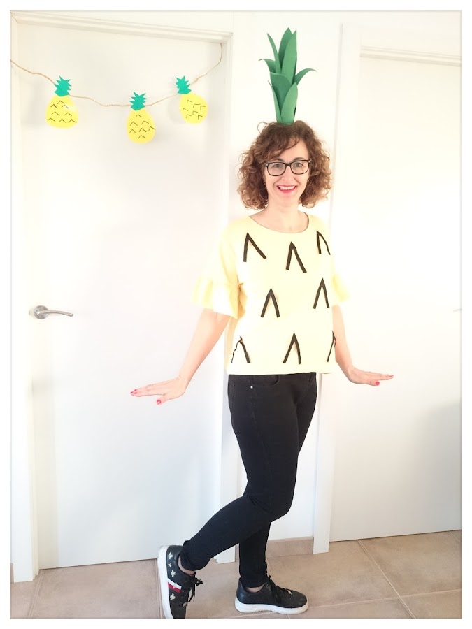 Damos la bienvenida a febrero y con el llegan dos celebraciones super especiales para los amantes del diy como yo, que cualquier escusa es buena, para ponerse a maquinar algún tutorial handmade, en esta ocasión te enseño hacer un disfraz de piña super sencillo y rápido de elaborar hecho por cuatro duros, como todos los diy que hago, es una idea ideal para hacer en el último momento si no tienes muy claro de que te quieres disfrazar.