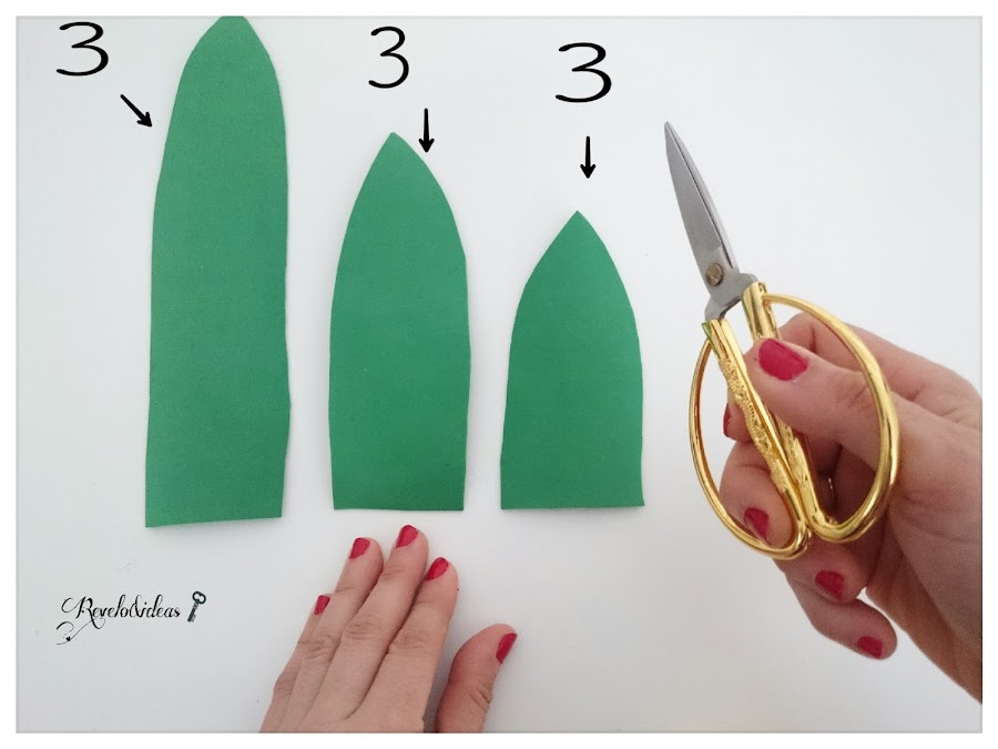 Dibujar y recortar un total de 3 hojas en tres tamaños diferentes, son un total de nueve hojas de