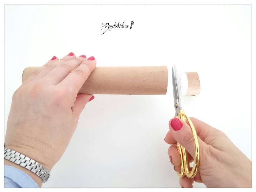 Cortar un trozo del rollo de cartón reciclado del rollo de papel de cocina es el que yo utilicé, para hacerlo mas pequeño.