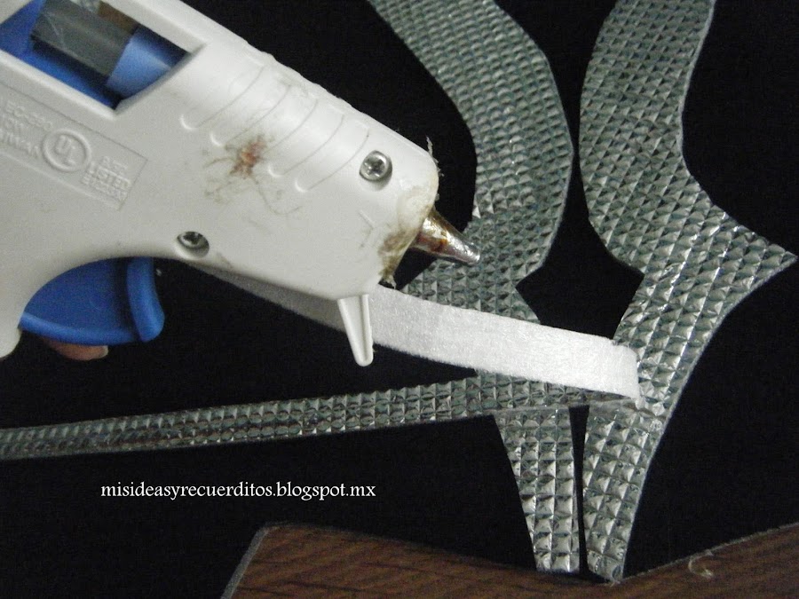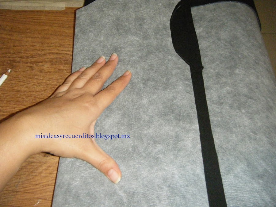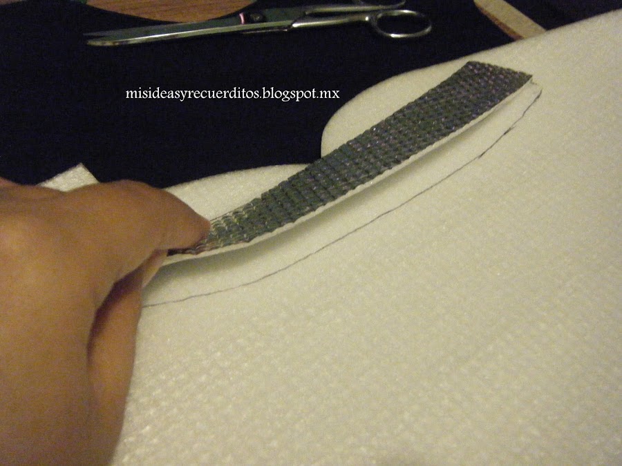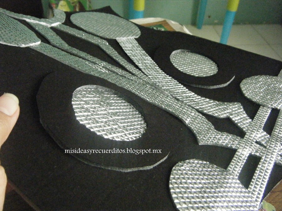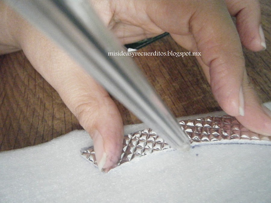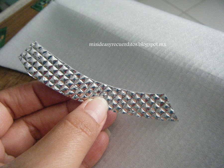 Un metro de pellón plastificado color Plata (este es el nombre que tiene en la Tienda de Telas)
