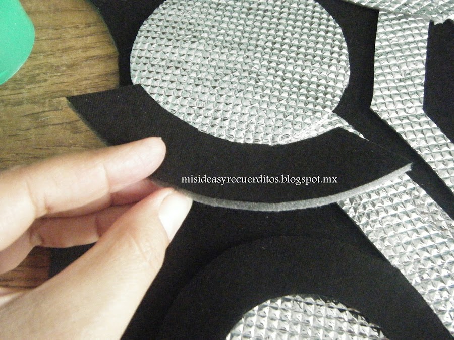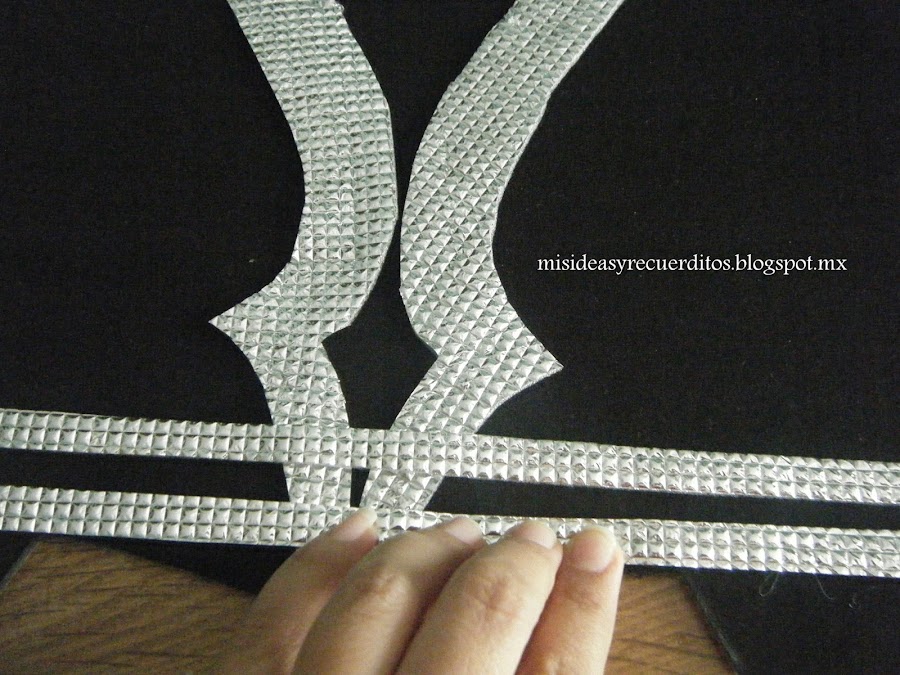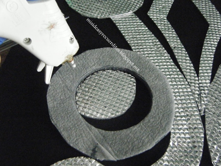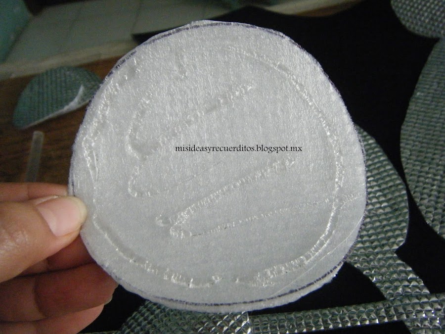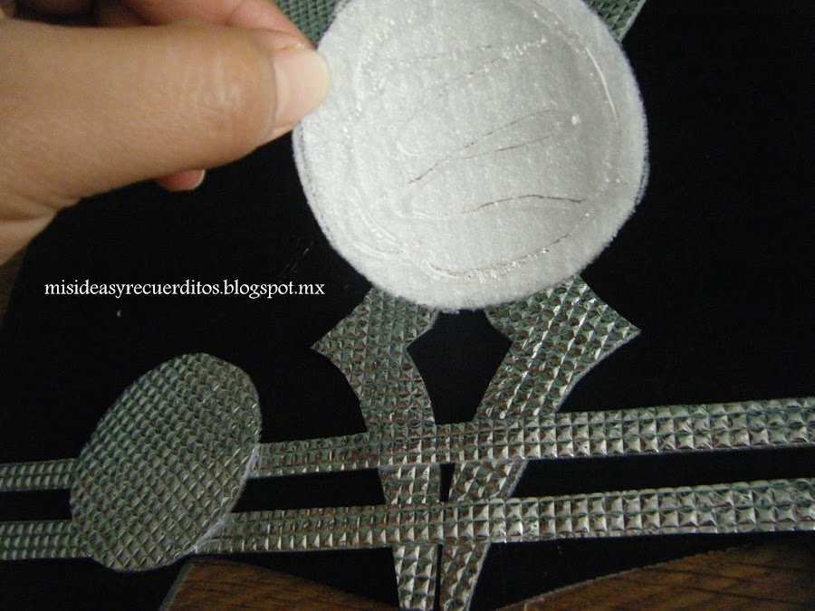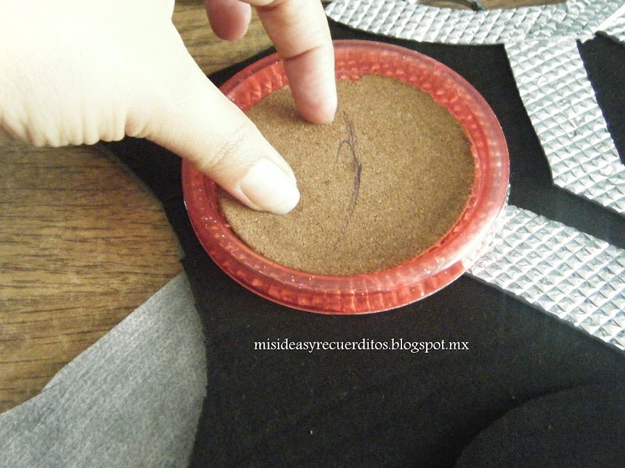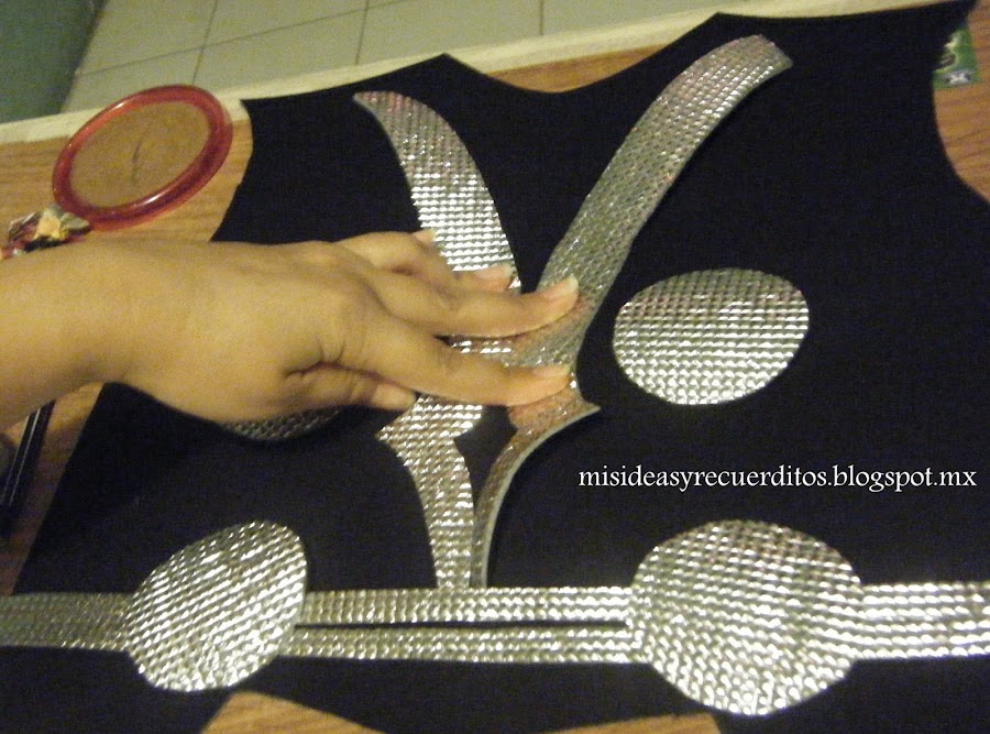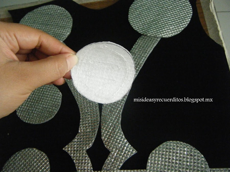 Luego marcamos los dos círculos pero en la manta negra para sacar los bordes que van alrededor de los círculos plata.