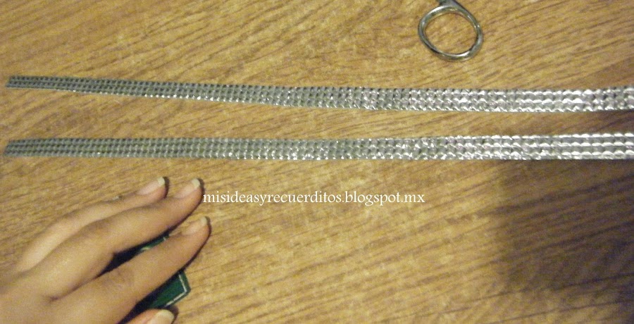 2 "rayos" pequeños de aproximadamente de 15 cm de largo, se cortan dos piezas una por el derecho y otra volteando la pieza. Las dos en color plata.