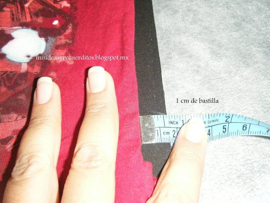 Toma una camisa de tu niño y dobla a lo largo por el derecho. Dobla la manta bondeada por el derecho o sea por el lado color negro y coloca la camisa encima, deja de uno a dos centímetros por el costado de la camisa para hacer la bastilla.