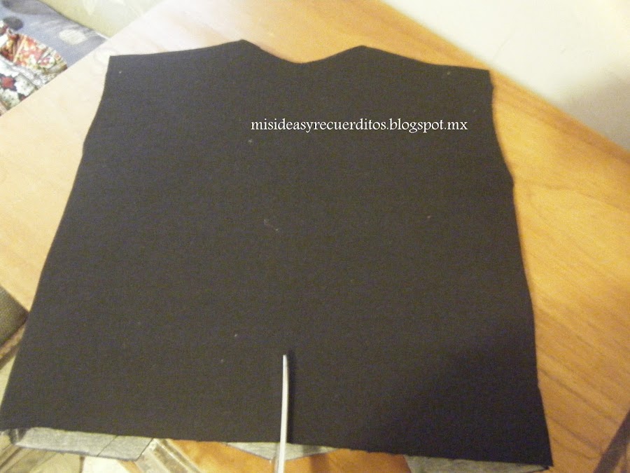 7. Ahora corta la pieza trasera y ya tenemos las dos piezas del chaleco.