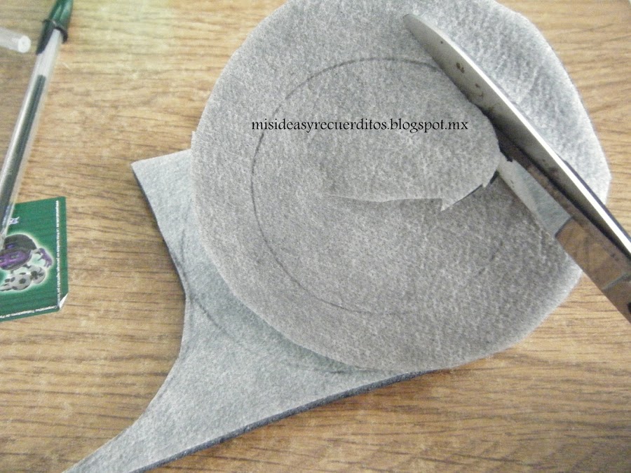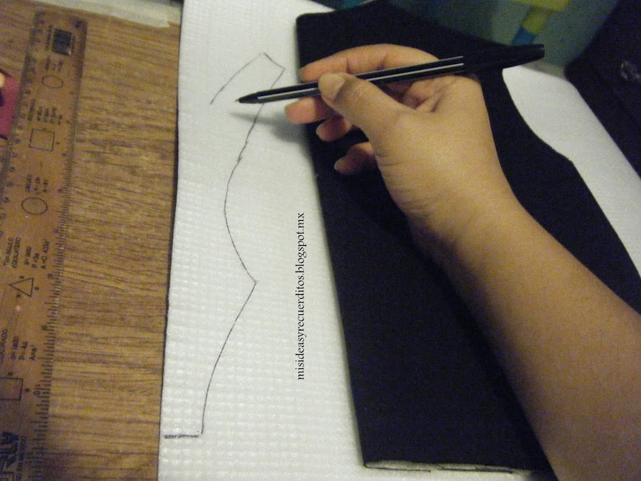 Luego dibuja por fuera el grosor del semicírculo. Corta y mide otra pieza similar pero por el derecho mide para sacar la pieza del otro lado.