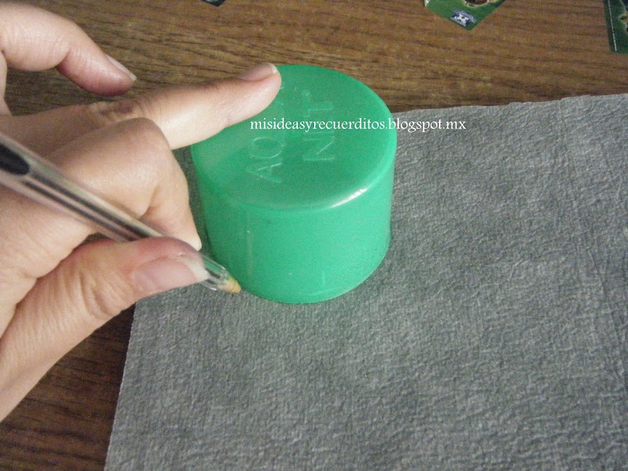 Ahora a marcar y cortar los círculos del chaleco. Yo usé el tapón de un spray del pelo, o un vaso mediano