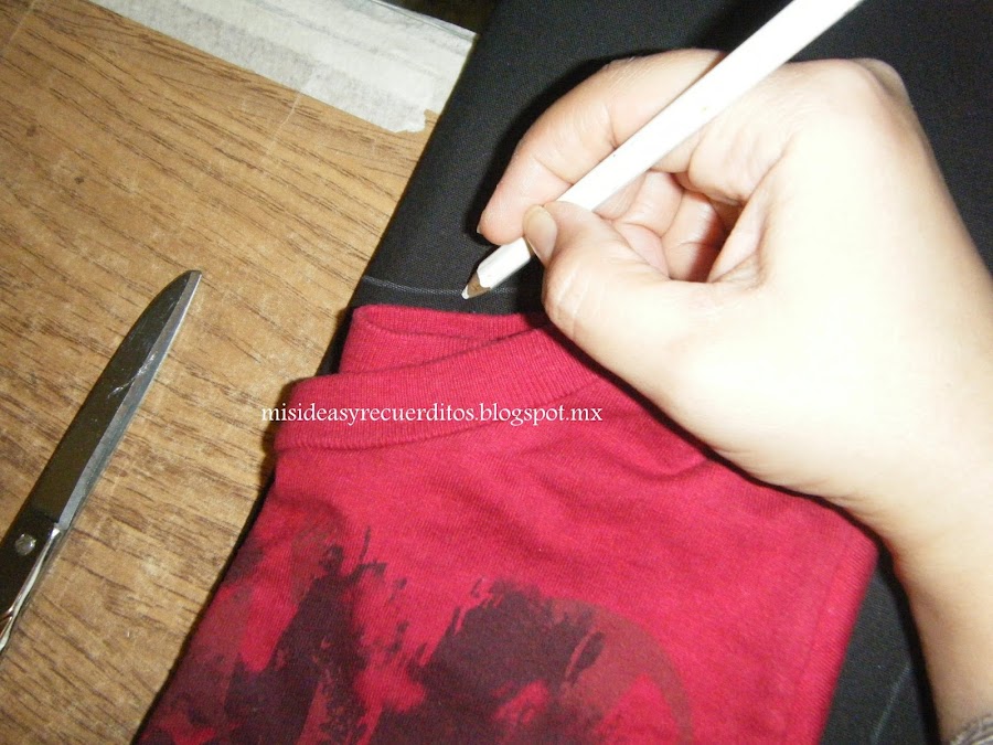 6. Ahora marca con la Tiza o el Lápiz blanco el contorno del chaleco