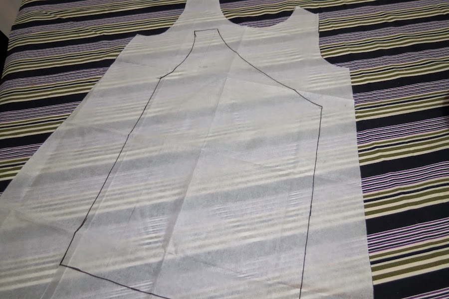 Luego esa pieza la ponemos derecho contra derecho en el retal que nos queda,esto es para tener la parte trasera y delantera, y cortamos la segunda pieza.