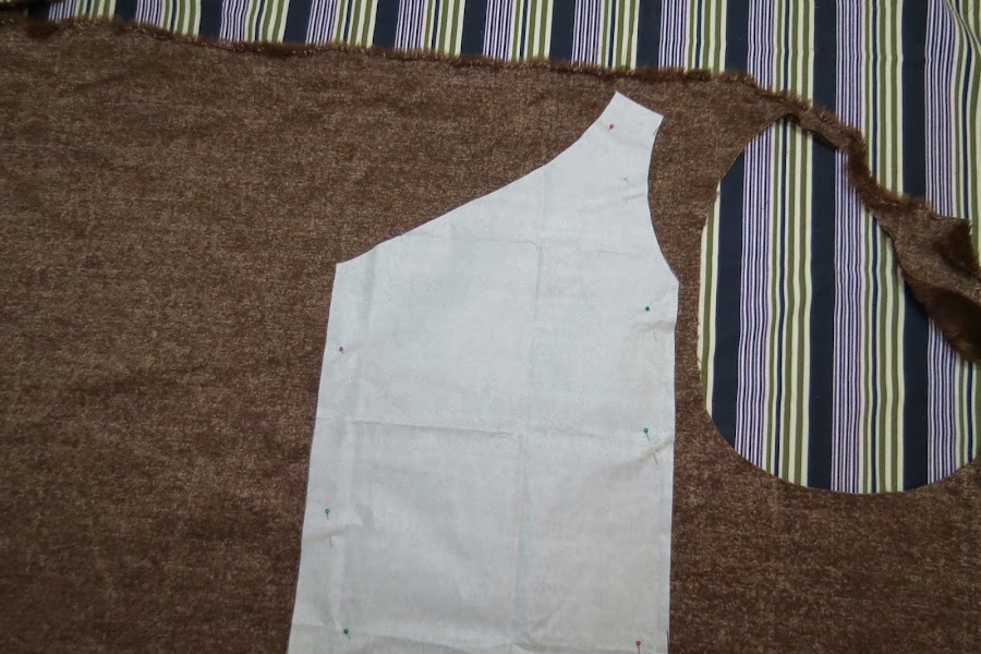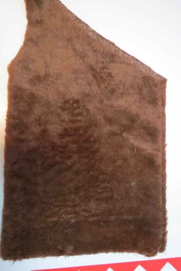 Ponemos el patrón sobre la tela de pelo y recortamos una pieza del patrón.Dejaremos 1cm de margen de costura.