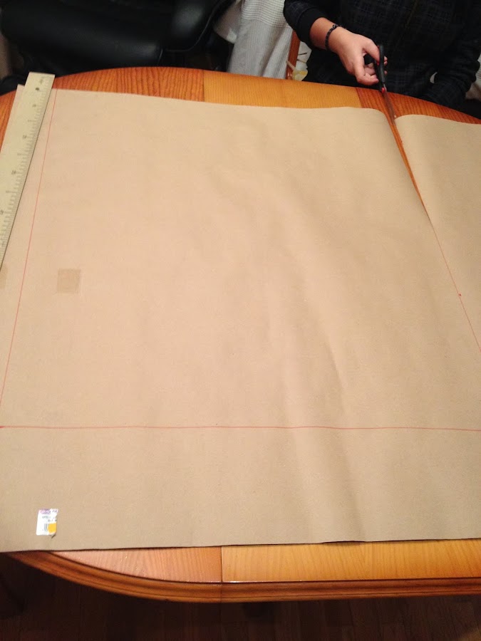 A continuación prepara un rectángulo de 70 x 75 cm de papel, mejor dale un poco más de margen que te sea más fácil hacer el dibujo.