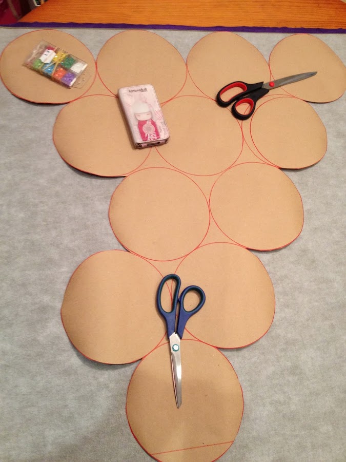 Hemos utilizado un plato que tiene 17 cm de diámetro como molde, y usándolo como plantilla dibuja el racimo sobre el papel.