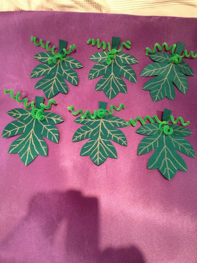 Comienza mirando un dibujo o foto de hoja de parra, con un papel doblado por la mitad, dibuja el contorno de la hoja y recorta.
