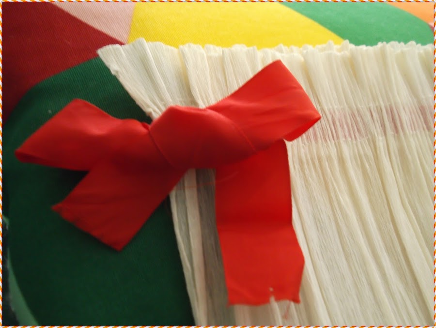 En la parte superior, un doble pespunte para poder introducir un lazo rojo que serían los tirantes del vestido.