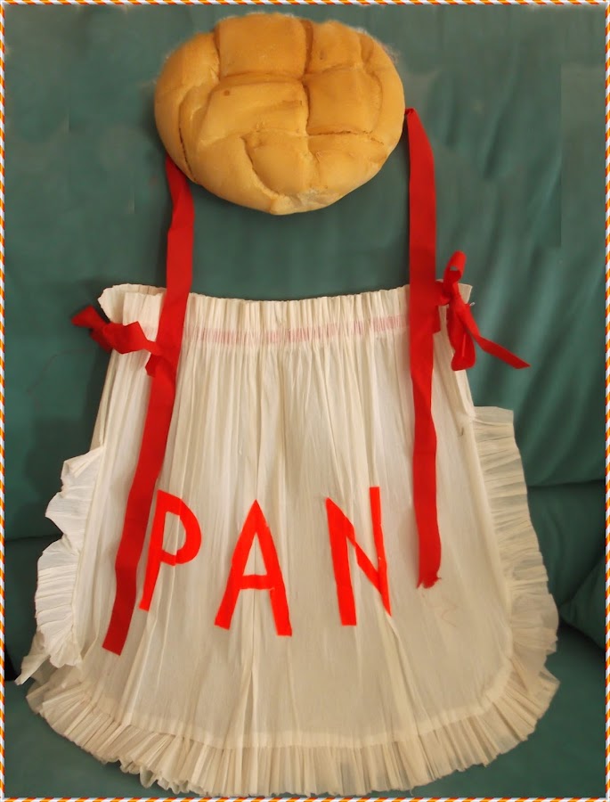 Han pasado ya unos años desde entonces, ella ya no es una niña, pero aun conserva este disfraz y el pan( dice que le trae buenos recuerdos). El pan está duro pero intacto.