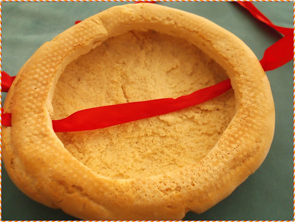 Con cuidado fui quitandole toda la miga y dejandole solo la corteza. Le hice unos cortes con un cuchillo y le puse el lazo para que lo pudiera sujetar.