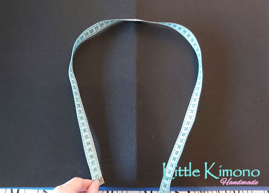 1. Lo primero que hice fue medir de "tirante" a "tirante" y luego alrededor del cuello hasta el escote, ésto más o menos para darle forma al cuello y lo dibujé en el fieltro.